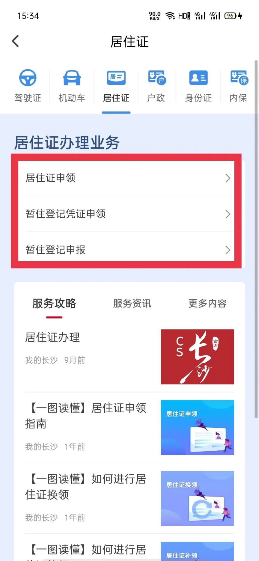 第一步:进入“我的长沙”APP后,点击首页中的【居住证服务】,进入【居住证办理专区】,选择个人居住证申领区域,并点击“同意,开始申请”,即可进行居住证申领;