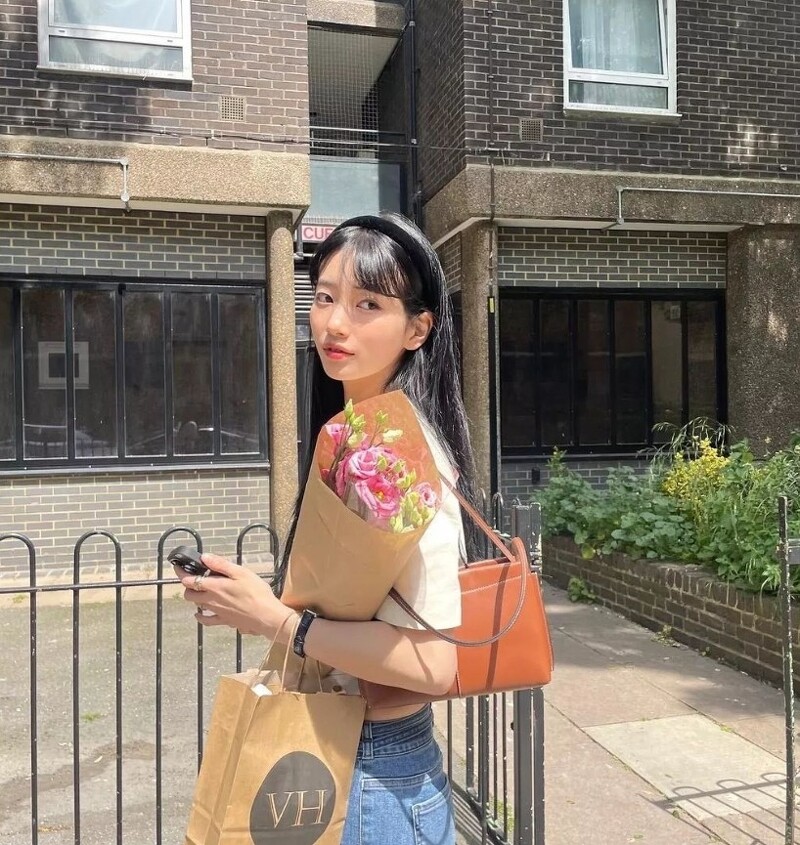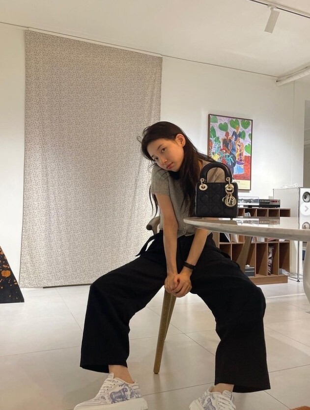 这款 Lady Dior 是秀智剧外,Instagram 的日常照里经常晒出的爱包,同时也是 Dior 的经典之作, mini 尺寸小巧又精緻,搭配上光泽感皮质,佐以缀饰 D、I、O、R 的 LOGO 挂件,儘管只是日常简约的舒适穿搭,一揹上也同样能散发女性优雅风貌。