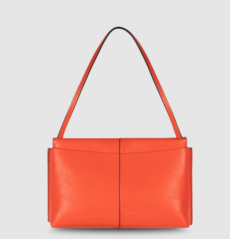 Wandler 迷你 Carly 单肩包,以简约线条和高质感皮革为特点,结合时尚与实用,绝对是韩系品牌中的佼佼者,不管是复古、田园、休闲风,揹上此包,整个人就有了法式的浪漫氛围,可以试试看以毛衣、较淡色彩的服装来做搭配。