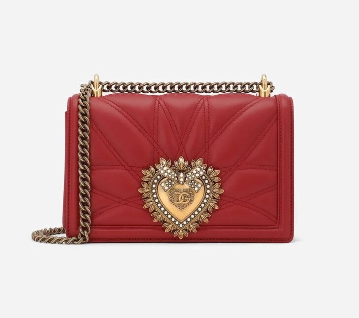 Dolce&Gabbana经典DEVOTION 挚爱之心系列手袋,上头的黄铜爱心显现华丽欧风,与秀智亮丽的偶像外型相辅相成,鲜豔的血红色比想像中更加时髦、实搭。