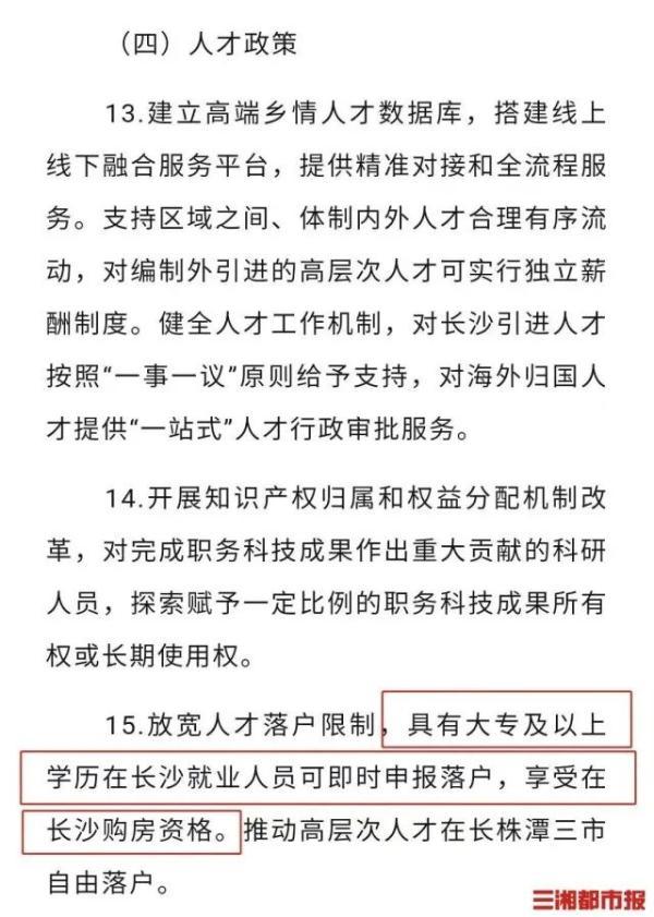 一、长沙人才新政45条落户: