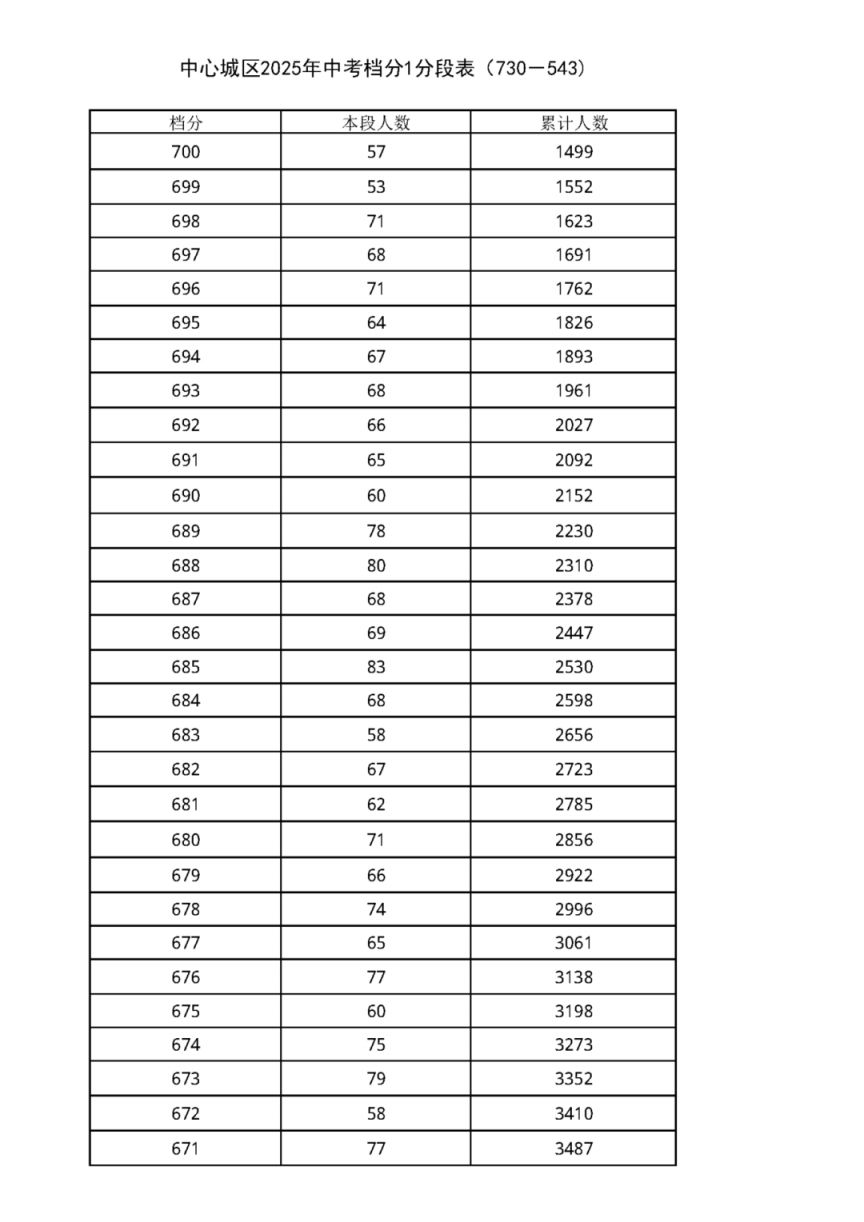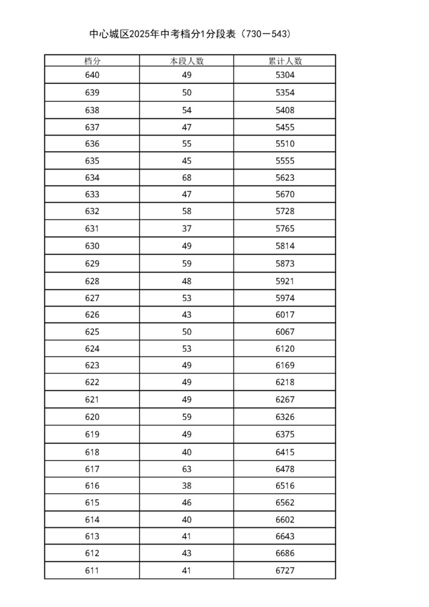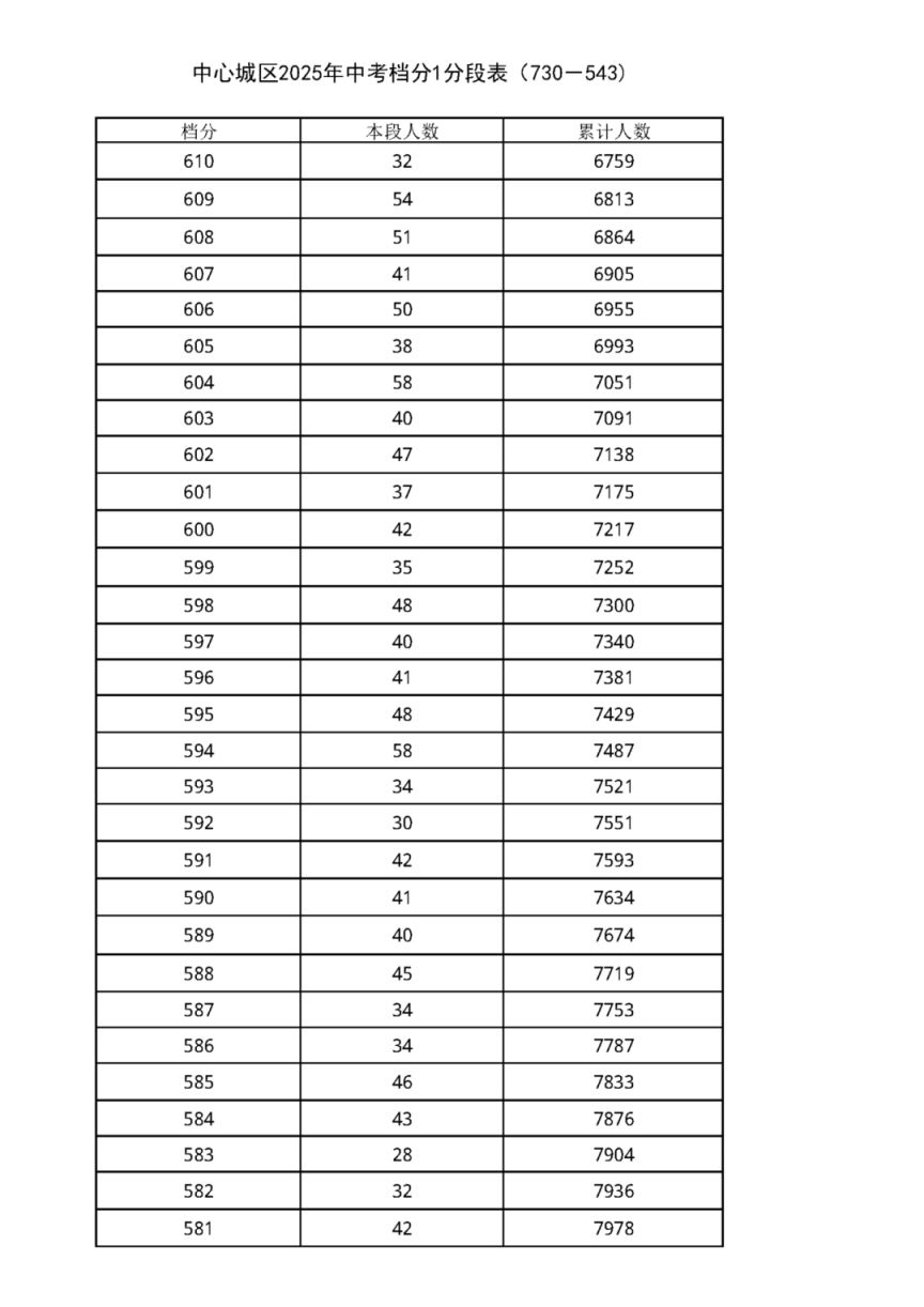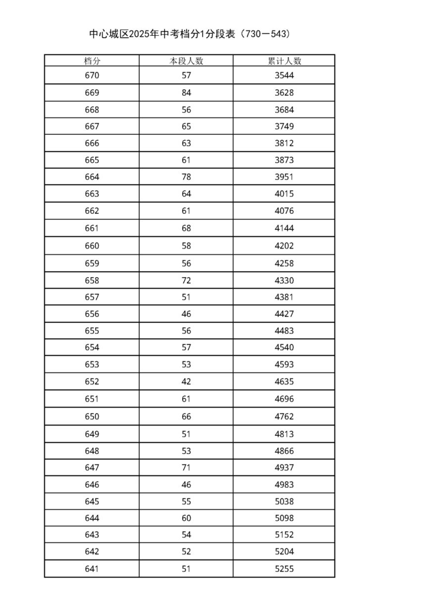 中考档分1分段表