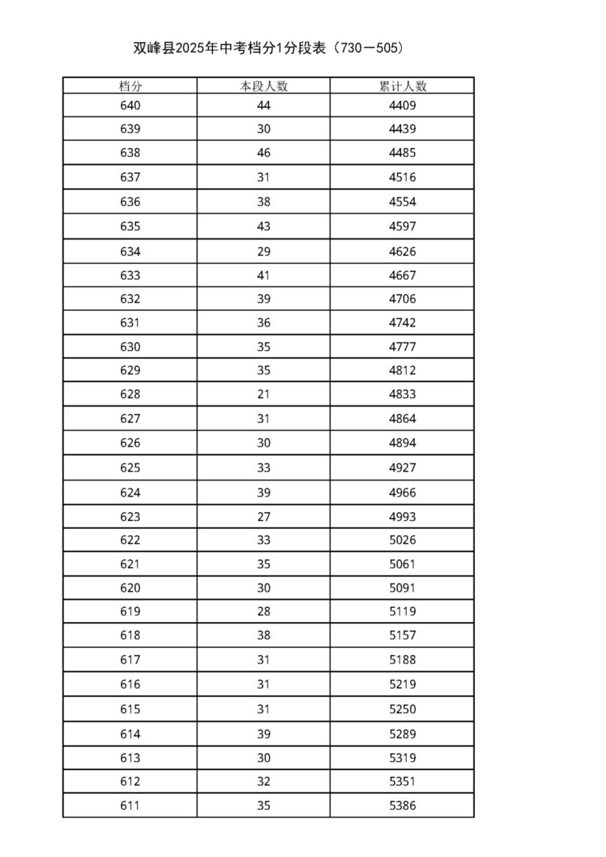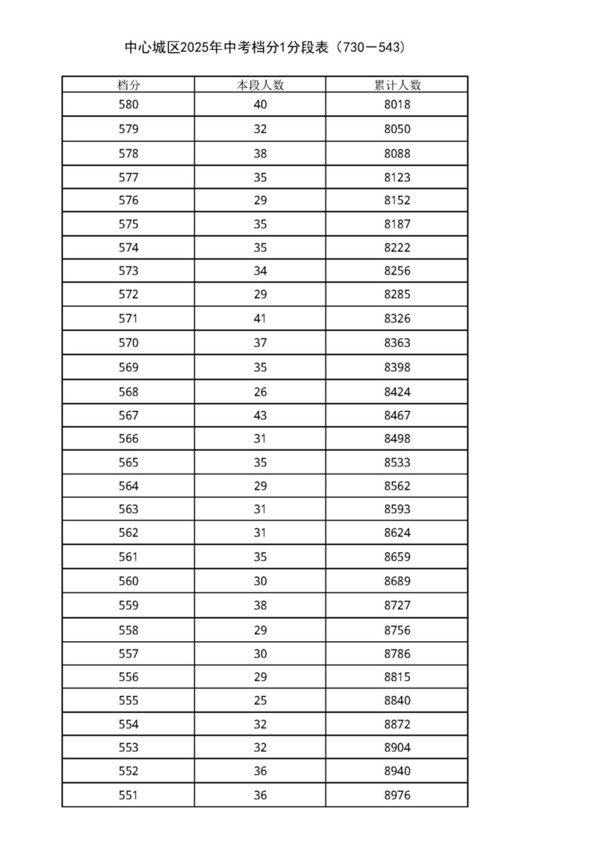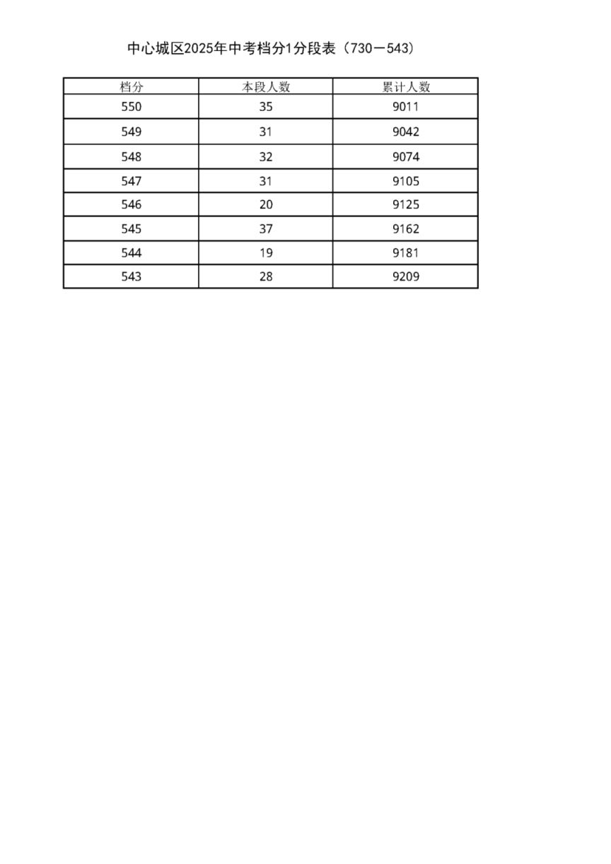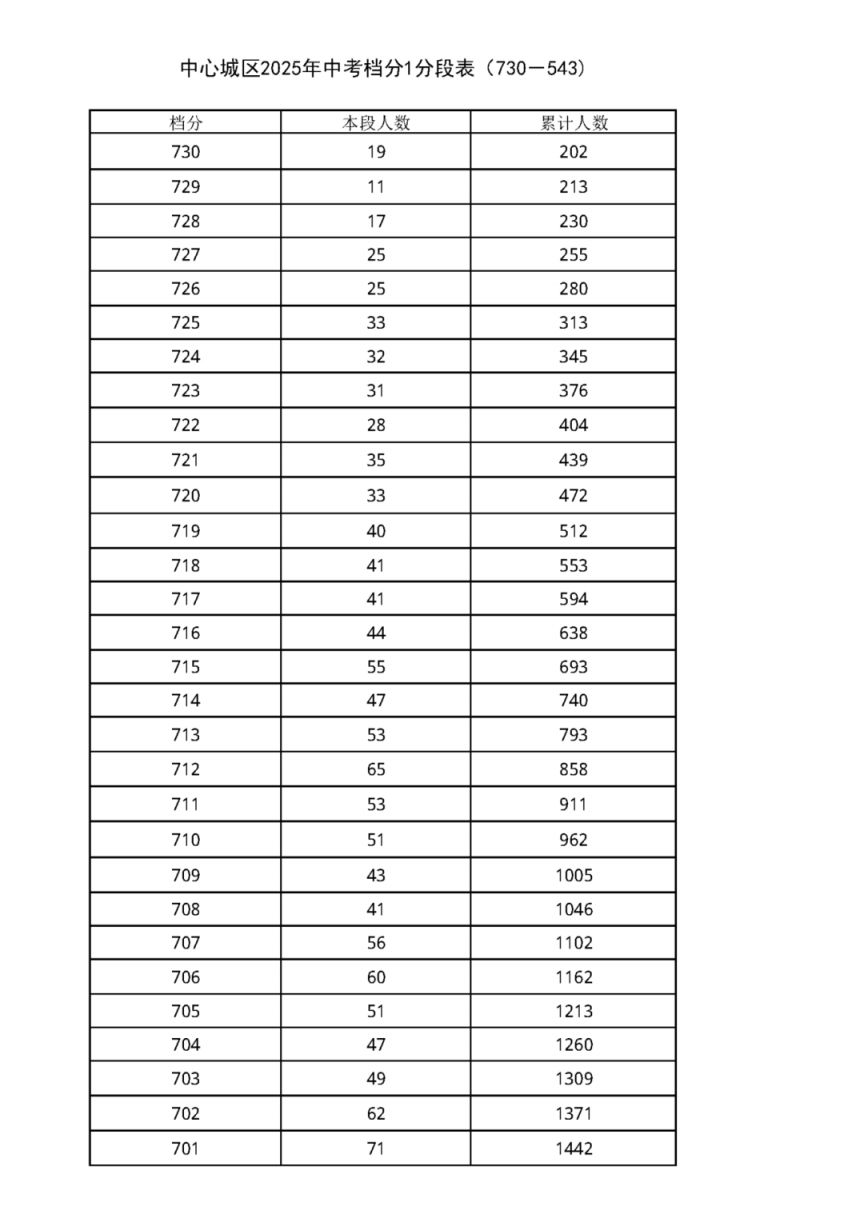 中考档分1分段表