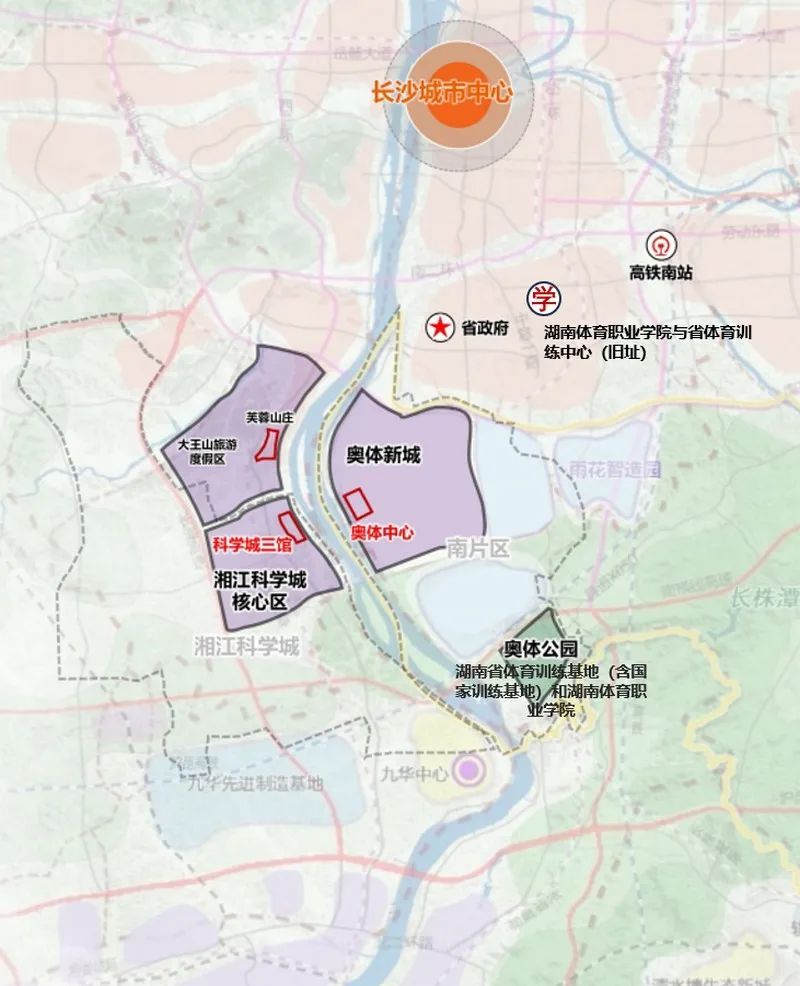项目选址长株潭三市地理中心、绿心中央公园范围内西北部,距离建设中的长沙奥体中心约8.5公里。