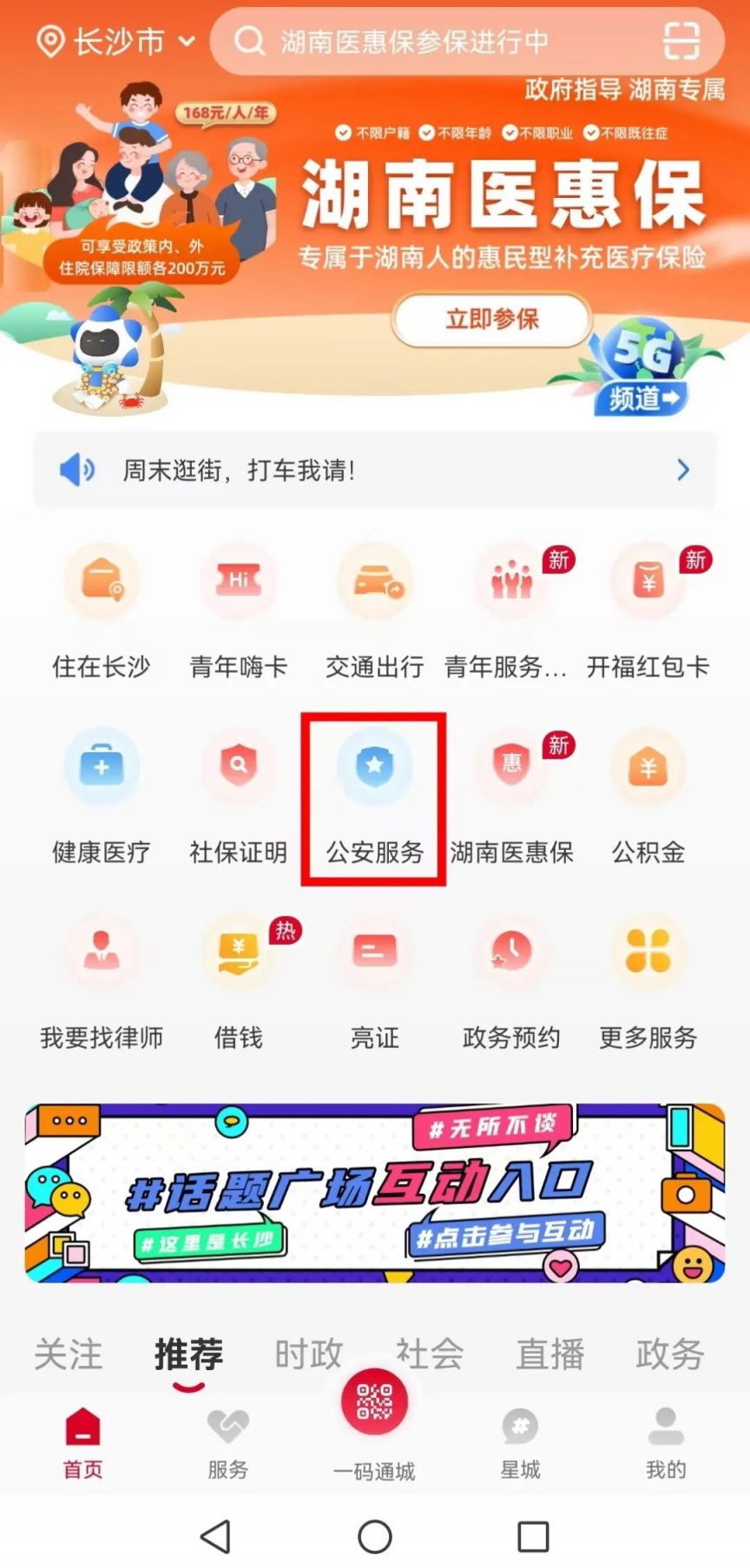 我的长沙APP预约方式:公安服务警务预约我要预约身份证业务