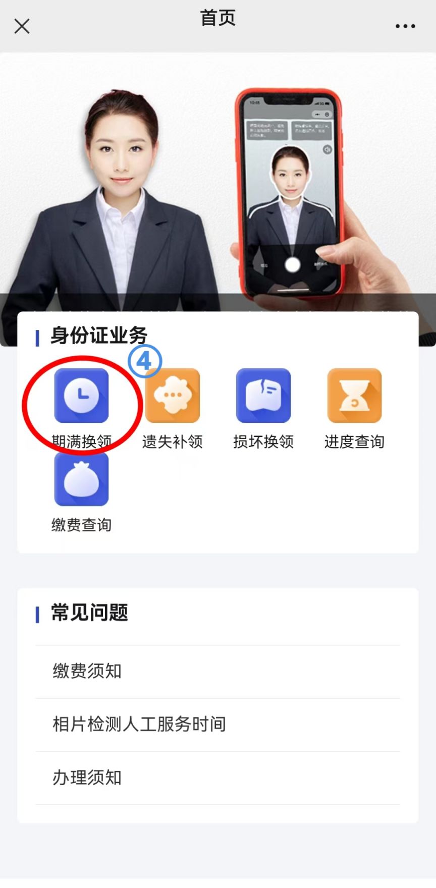1、微信关注“湖南公安服务平台”,注册登录实名认证后——微警务——首页——热点应用——身份证业务全程网办——长沙市户籍人口(含长沙县、浏阳、宁乡)申领通道——期满换领。